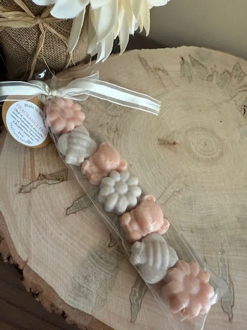 Olive oil, coconut oil, shea butter, cocoa butter, castor oil, and beeswax are the foundation of my soap and body care products. I use only essential oils, natural colorants, and natural exfoliants. No artificial fragrances, colors, or harmful additives. Learn More